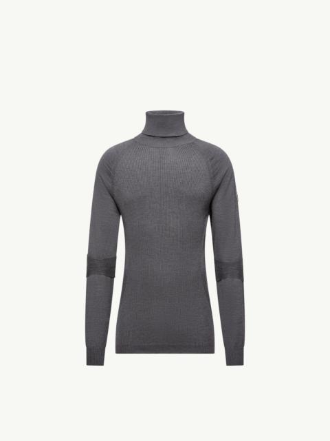 A lightweight layer of warmth, this wool sweater is essential for mountain getaways. Part of the men's Moncler Grenoble collection. An extra layer of warmth during outdoor pursuits, this sweater is crafted from wool. The lightweight knit boasts a stretch finish, supporting movement during physical activity. DETAILS - Crafted from stretch wool - Gauge 18 - Turtleneck - Logo patch SIZE AND FIT - The model is wearing a size L and is 188 cm tall COMPOSITION BASE FABRIC: 95% Virgin wool, 5% Polyester Product code K20979F00002M1122971 Made in Italy