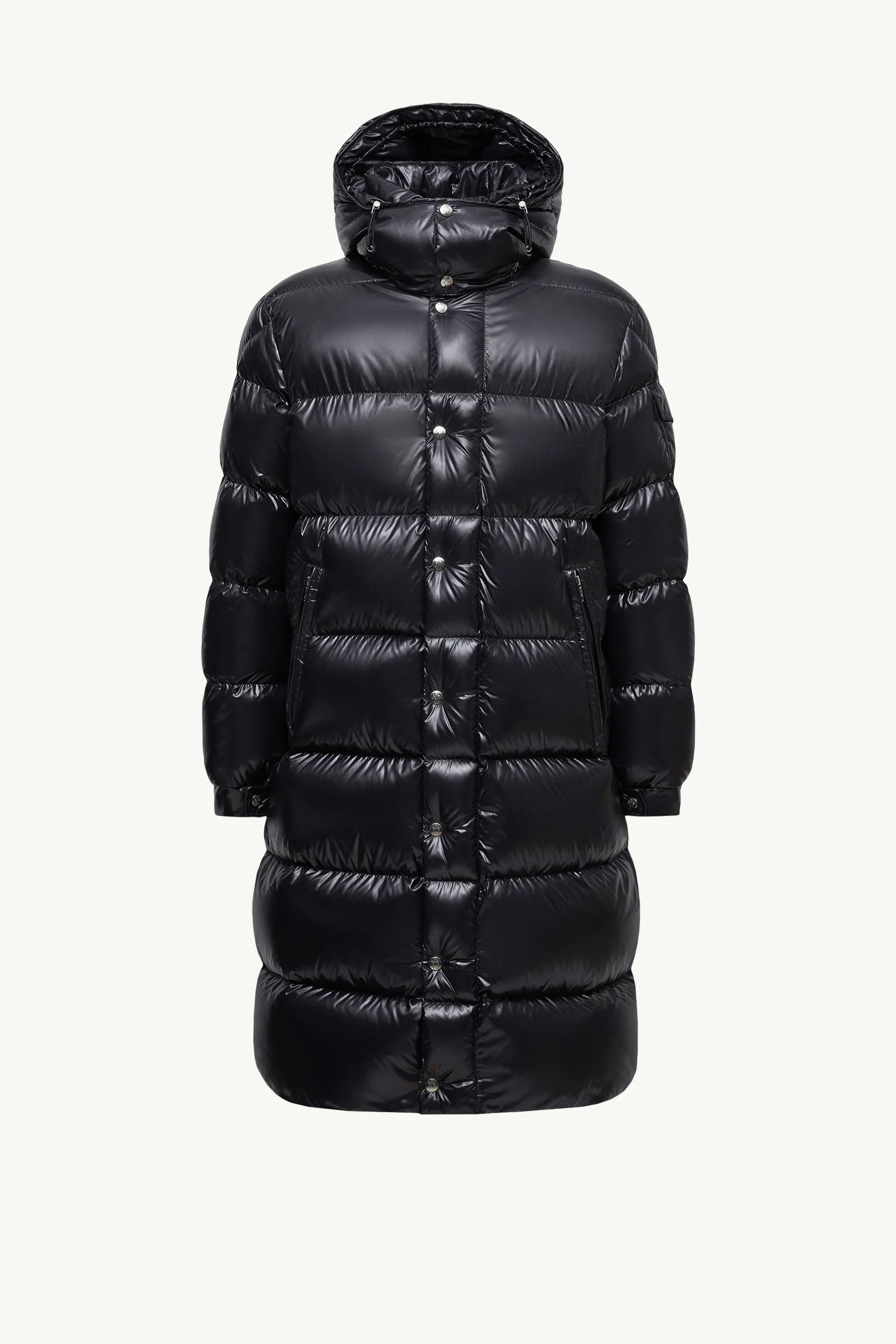 Classic Moncler aesthetic, performance and protection are fused in the Hanoverian long down jacket for men. Crafted from nylon laque, the Hanoverian long down jacket features functional details that guarantee warmth and protection. A Moncler classic, the down coat showcases a detachable hood and a front zipper covered by a storm flap, enhancing the design's protective properties. DETAILS - Crafted from nylon laque - Nylon laque lining - Down-filled - Detachable and adjustable hood - Zipper and snap button closure - Zipped pockets - Adjustable cuffs - Hem with drawstring fastening SIZE AND FIT - Loose fit - Length (collar to hem): 0 cm COMPOSITION EXTERIOR: 100% Polyamide / Nylon; LINING: 100% Polyamide / Nylon; HOOD LINING: 100% Polyamide / Nylon; PADDING: 90% Down, 10% Feather Product code K20911C00006C0081999 Made in Romania