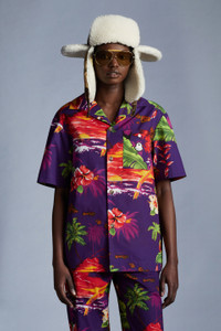 Light cotton shirt in the Hawaii print, this pajama-inspired style channels the aesthetic of the 8 Moncler Palm Angels collection. In true 8 Moncler Palm Angels fashion, this shirt fuses two disparate sources of inspirations into a unique aesthetic mix. The soft, pajama-influenced silhouette is crafted from soft cotton in a tropical Hawaii print. Easily styled alone, the shirt pairs perfectly with pants in the matching print. - Gender-neutral - Crafted from cotton in the Hawaii print - Short sleeves - Button up - Branded buttons - Synthetic mother-of-pearl button on chest pocket - Embroidered velvet logo on chest pocket - Loose fit SIZE AND FIT - The male model is wearing a size 48 and is 186 cm tall - The female model is wearing a size 40 and is 177 cm tall COMPOSITION AND CARE YOKE LINING: 100% Cotton; BASE FABRIC: 100% Cotton Wash max 30°C - Mild process; Do not bleach; Do not tumble dry; Ironing maximum temperature 110°C - without steam; Dry cleaning in tetrachloroethene or with hydrocarbons - mild process; Professional wet cleaning - mild process; Flat dry in the shade; Wash separately; It is advisable to wash and iron the garment on reverse. Product code G209L2F00002M1395650 Made in Italy