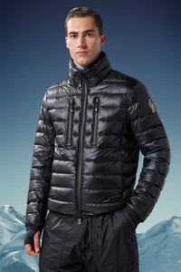 The Hers short down jacket for men is crafted in water-repellent ripstop nylon and is embellished with details that pay tribute to Moncler heritage. The Hers short down jacket for men emblematic of Moncler Grenoble, showcasing a contemporary, fitted silhouette elevated by its high-tech construction. With its foldable design, this style fits into a small pouch that can be carried everywhere in a bag or a backpack. - Crafted from recycled 10-denier micro ripstop - Longue saison lining - Down-filled - Packable - YKK® AquaGuard® Highly Water Resistant zipper closure - Pockets with YKK® AquaGuard® Highly Water Resistant zipper closure - Stretch jersey cuffs COMPOSITION AND CARE LINING: 100% Polyamide / Nylon; PADDING: 90% Down, 10% Feather; DETAILS PADDING: 100% Polyester; 1 MATERIAL: 83% Polyamide / Nylon, 17% Elastane / Spandex; BASE FABRIC: 100% Polyamide / Nylon Wash max 30°C - Mild process; Do not bleach; Do not tumble dry; Ironing maximum temperature 110°C - without steam; Do not dry clean; Professional wet cleaning - mild process; Flat dry in the shade; Wash separately; Iron with a cloth between; do not soak; It is advisable to wash with the garment on reverse. Product code I20971A00033595B1999 Made in Romania