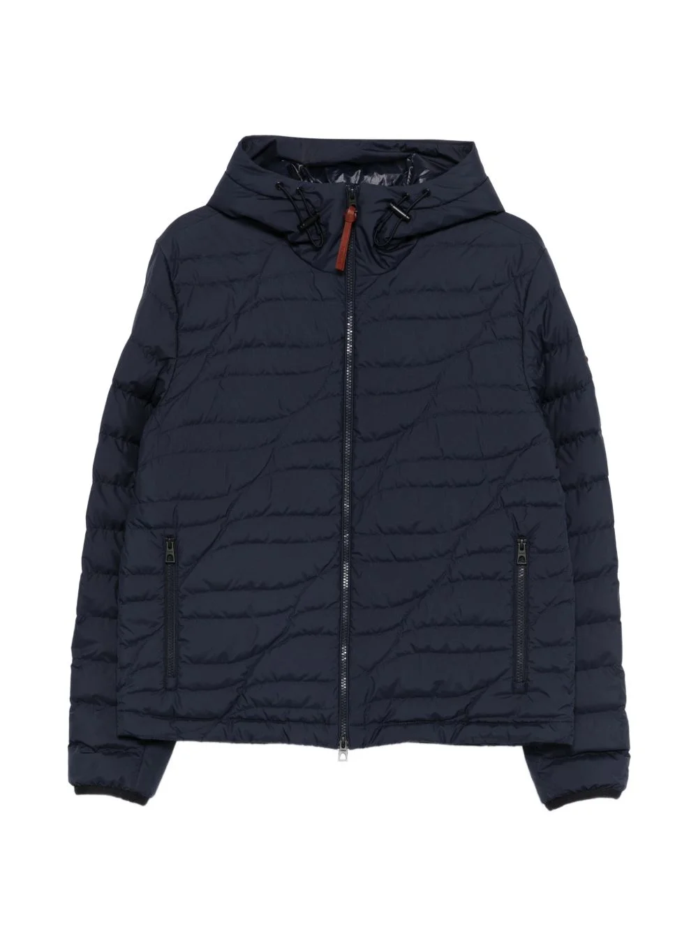 hooded zip-fastening jacket Highlights - Blue - Zipped closure - Hooded - Zip-fastening pockets - Elasticated cuffs - Quilted Imported Composition Outer: Polyester 100% Lining: Polyester 100%, Goose Down 90%, Feather 10% Washing instructions Hand Wash
