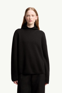 Minimal in spirit, this Moncler + JIL SANDER wool hoodie for men and women brings a versatile layer of warmth to the collection. Minimal in form yet distinctive in detail, the Moncler + JIL SANDER wool hoodie reinterprets knitwear with a balaclava-inspired hood. Crafted from felted wool, the mid-weight knit remains sleek while providing tactile warmth. Finished with a metal brooch, the piece carries the discreet signature of the co-creation. DETAILS - Crafted from felted wool - English rib knit - Gauge 7 - Hood - Detachable metal logo pin SIZE AND FIT - The female model is wearing a size 0 and is 176 cm tall - The male model is wearing a size 3 and is 186 cm tall - Regular fit COMPOSITION BASE FABRIC: 100% Virgin wool Product code K24059G00004M3328999 Made in Italy