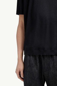 Spotlighting precious fabrics, this knit t-shirt from the men's collection is crafted from a silk and cotton blend. Elevating a daily essential, this t-shirt is knit from a luxurious silk and cotton blend. Ideal for balmy weather, the lightweight design features in a short sleeve silhouette. DETAILS - Crafted from a silk and cotton blend - Stockinette and Linz stitch - Gauge 18 - Crew neck - Short sleeves - Logo patch SIZE AND FIT - The model is wearing a size L and is 190 cm tall - Regular fit COMPOSITION BASE FABRIC: 55% Silk, 45% Cotton Product code K10919C00011M6329999 Made in Romania