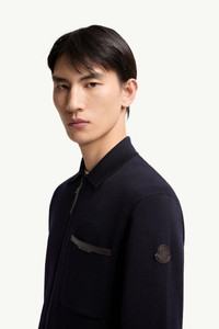 Leather Logo Wool Zip-Up Cardigan