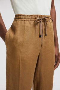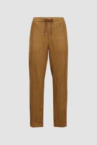 Easy to dress up or down, this pair of pants from the men's collection is crafted from sophisticated linen jersey. Encapsulating everyday luxury, this pair of pants is crafted from linen jersey. The bottoms can be worn together with a matching jacket for a contemporary interpretation of a two-piece suit. DETAILS - Crafted from linen twill - Waistband with drawstring fastening - Zipper closure - Back pockets with snap button closure - Leather logo patch SIZE AND FIT - The model is wearing a size 48 and is 189 cm tall COMPOSITION EXTERIOR: 100% Flax/Linen;LEATHER TAG: COW Product code K10912A00014598J425I Made in Bulgaria