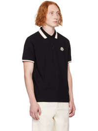 Cotton pique polo. · Striped rib knit spread collar and cuffs · Two-button placket · Felted logo patch at chest Supplier color: Black 100% cotton. Made in Turkey 242111M212038