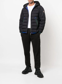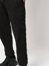 MONCLER logo-embroidered track pants Highlights - black - cotton - tonal design - embroidered logo to the side - logo patch to the rear - elasticated waistband - two side welt pockets - rear patch pocket - elasticated ankles Composition Cotton 100%, Polyester 100% Washing instructions Machine Wash Brand style ID: H20918H00003809KR Wearing The model is 1.85 m wearing size M