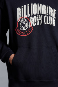 Part of the Moncler x Billionaire Boys Club collection for men, this loose fit logo hoodie is crafted from cotton fleece. Moncler meets the Billionaire Boys Club in this cotton fleece hoodie. The hooded sweatshirt is emblazoned with the collection logo. - Crafted from cotton fleece - Hood - Logo print - Logo patch SIZE AND FIT - The model is wearing a size M and is 188 cm tall - The model measures: chest 75 cm, waist 91 cm, hips 42 cm - Loose fit COMPOSITION AND CARE HOOD LINING: 100% Cotton; HOOD: 100% Cotton; BASE FABRIC: 100% Cotton; Ribs: 98% Cotton, 2% Elastane / Spandex Wash max 30°C - Very mild process; Do not bleach; Do not tumble dry; Ironing maximum temperature 110°C - without steam; Do not dry clean; Professional wet cleaning - very mild process; Flat dry in the shade; Wash separately; Wash inside out; Iron inside out Product code I20968G0000180948778 Made in Albania