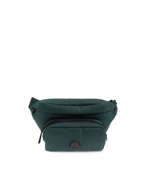 logo-patch belt bag Highlights - Dark green - Front zip fastening - Clip-on buckle fastening - Adjustable waist strap - Front zip-fastening pocket Imported Composition Outer: Polyamide 53%, Polyester 47% Lining: Calf Leather 100%, Polyamide 100% SIZE & FIT Measurement DEPTH 2.75 in(7 cm) HEIGHT 7.08 in(18 cm) WIDTH 14.96 in(38 cm)
