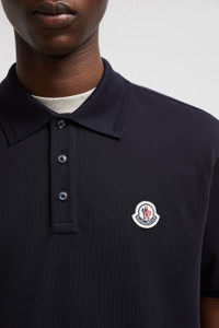 A timeless design, this cotton pique polo shirt is embellished with a logo patch. A timeless design that transcends seasons, this polo shirt is crafted from cotton pique. The classic style is embellished with a Moncler logo patch on the chest. DETAILS - Crafted from cotton piquet - Collar - Mother-of-pearl buttons - Short sleeves - Moncler logo in cloth SIZE AND FIT - The model is wearing a size L and is 187 cm tall - The model measures: chest 84 cm, waist 72 cm, hips 98 cm - Regular fit COMPOSITION BASE FABRIC: 100% Cotton; Ribs: 99% Cotton, 1% Elastane / Spandex Product code J20918A000098455677X Made in Turkey