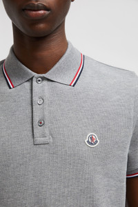 A timeless design, this cotton pique polo shirt is embellished with a logo patch. A timeless design that transcends seasons, this polo shirt is crafted from cotton pique. The classic style is embellished with a Moncler logo patch on the chest. DETAILS - Crafted from cotton piquet - Collar - Mother-of-pearl buttons - Short sleeves - Tricolor trim SIZE AND FIT - The model is wearing a size L and is 187 cm tall - The model measures: chest 84 cm, waist 72 cm, hips 98 cm - Slim fit COMPOSITION BASE FABRIC: 100% Cotton; Ribs: 99% Cotton, 1% Elastane / Spandex Product code J20918A7030084556984 Made in Turkey