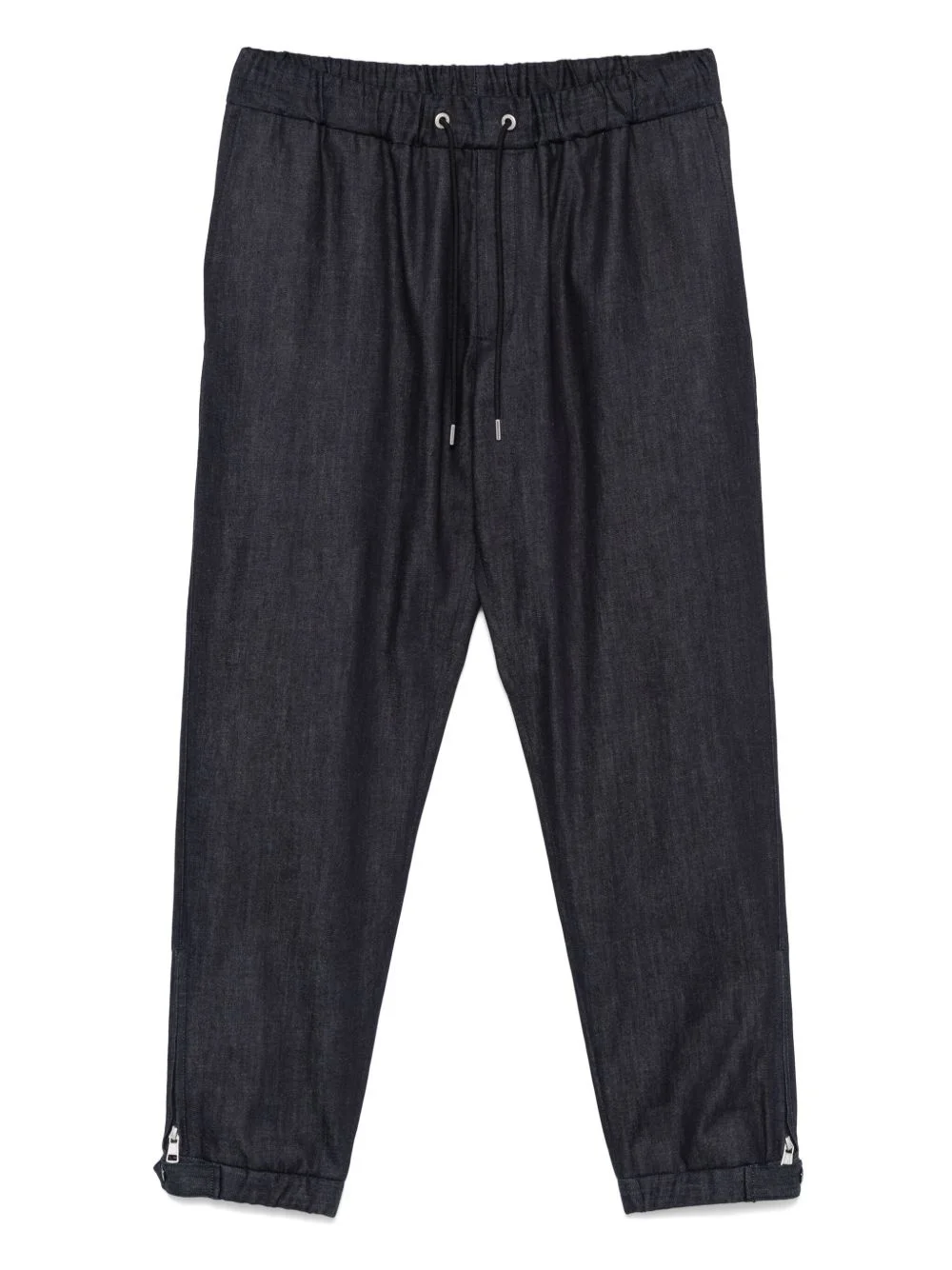 logo-patch tapered trousers Highlights - Prussian blue - Elasticated drawstring waistband - Two side slit pockets - Cuff zips - Rear zip-fastening pocket Imported Composition Cotton 98%, Spandex/Elastane 2% SIZE & FIT Model measurements Height 6 ft 1 in(1.85 m) Bust/Chest 38.18 in(97 cm) Hips 36.61 in(93 cm) Waist 31.49 in(80 cm) FittingInformation Designed for a relaxed tapered leg, allowing a comfortable loose fit above the knee with a closer fit towards the calves Adjust this piece’s waistband to your preference using the drawstring Made from a midweight stretch fabric, this piece offers elasticity and flexibility when worn