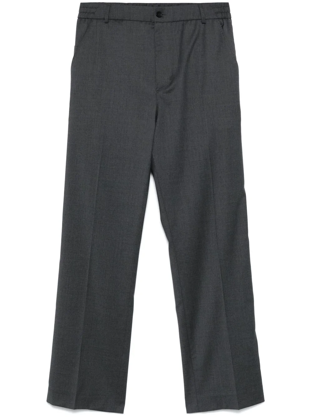 logo-patch trousers Highlights - Anthracite grey - Concealed fly and button fastening - Elasticated waistband with internal drawstring - Two side slash pockets - Two rear flap pockets Made in Italy Composition Calf Leather 100%, Virgin Wool 98%, Elastane 2% SIZE & FIT Model measurements Height 6 ft 1 in(1.86 m) Bust/Chest 36.61 in(93 cm) Hips 37 in(94 cm) Waist 28.74 in(73 cm) FittingInformation Designed for a relaxed straight leg, allowing a comfortable and loose fit over the leg Adjust this piece’s waistband to your preference using the drawstring Made from a midweight stretch fabric, this piece offers elasticity and flexibility when worn