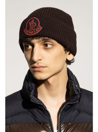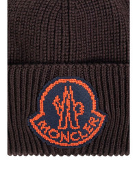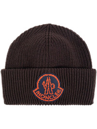 logo-patch wool beanie Highlights - Brown - Wool - Ribbed knit - Logo patch to the front - Turn-up hem Imported Composition Wool 100%