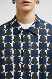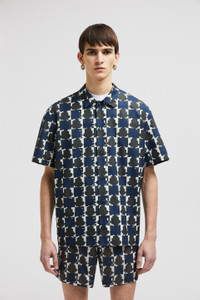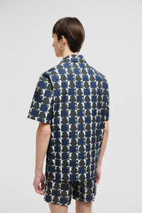 Designed for relaxing in the warm weather, this men's shirt boasts a pixelated logo print. Perfect for your next getaway, this short sleeve shirt goes from beach days to evenings. The shirt is crafted from cotton poplin in a pixelated logo print. Pair with matching shorts for a total resort look. DETAILS - Crafted from cotton poplin - Collar - Short sleeves - Mother-of-pearl button closure SIZE AND FIT - The model is wearing a size L and is 187 cm tall - The model measures: chest 85 cm, waist 75 cm, hips 85 cm COMPOSITION EXTERIOR: 100% Cotton Product code J20912F00007597YJS90 Made in Romania