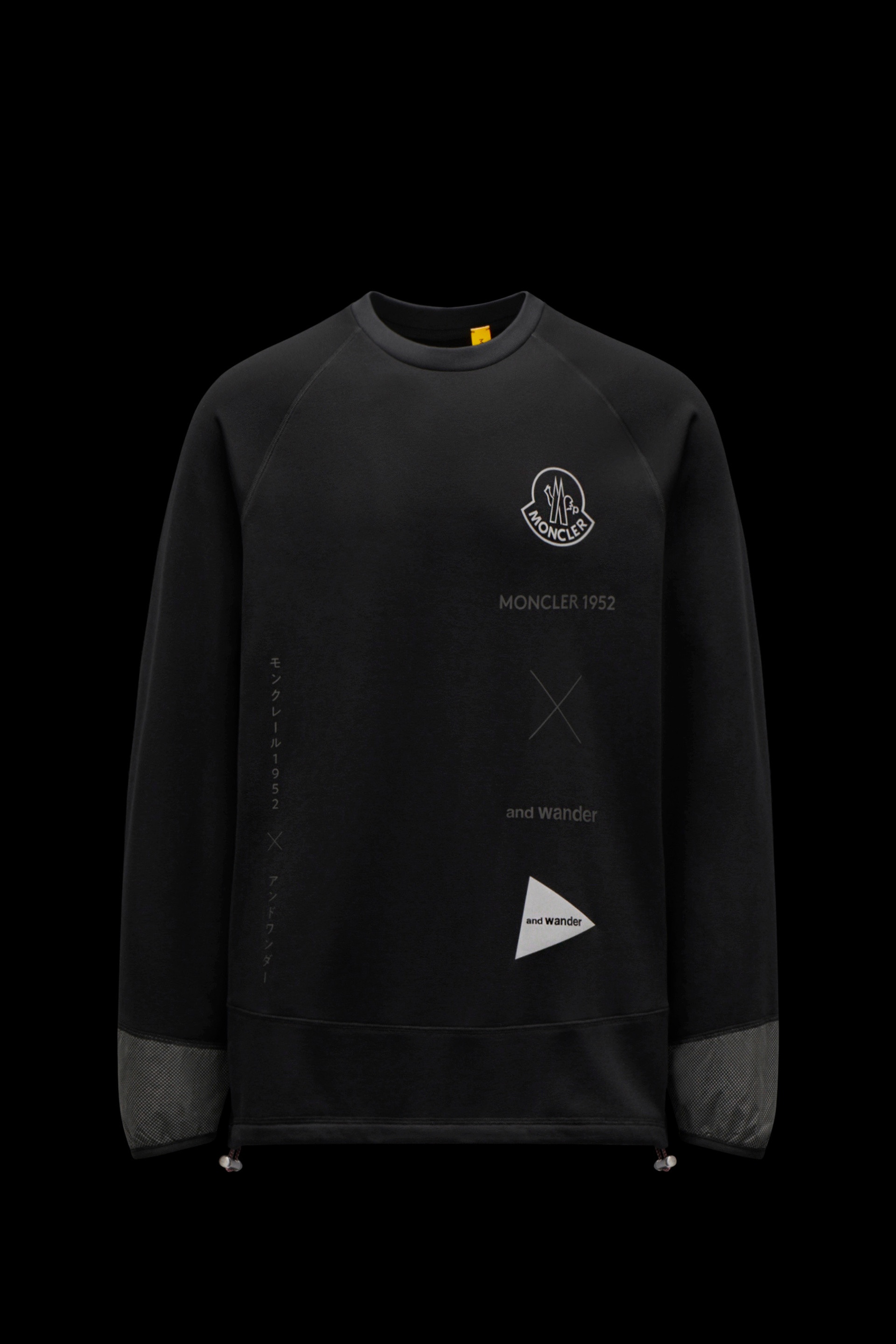 This technical fleece sweatshirt is part of the 2 Moncler 1952 line, collection n° 2 of the Moncler Genius project. A technical-looking, striking sweatshirt, it combines Moncler’s hiking links with ''and wander''’s experience in outdoor clothing. Its drawstring hem can be adjusted to find your perfect fit, while reflective nylon strips on the cuffs and back of the neck add a distinctive stylistic touch. - Sweatshirt for men from the 2 Moncler 1952 line, collection n° 2 of the Moncler Genius project, in collaboration with 'and wander' - Crafted in performance fleece - Crewneck and long raglan sleeves - Silk-screen printed reflective graphics on front - Reflective textured nylon inserts on cuffs and back of neckband - Elastic drawstring hem SIZE AND FIT - The model is wearing a size L and is 187 cm tall - Designed for a relaxed fit COMPOSITION AND CARE BOTTOM: 100% Polyamide / Nylon; BASE FABRIC: 57% Polyester, 33% Polyamide / Nylon, 10% Elastane / Spandex; Ribs: 100% Polyester Wash max 30°C - Mild process; Do not bleach; Do not tumble dry; Do not iron; Do not dry clean; Professional wet cleaning - mild process; Flat dry in the shade; Wash separately; It is advisable to wash with the garment on reverse.; PROTECT TRIMS WHILE WASHING Product code G20928G00015899IG999 Made in Romania