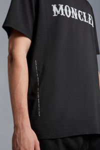 An elevated casual piece, this t-shirt for men and women is part of the 7 Moncler FRGMT Hiroshi Fujiwara collection. Crafted from soft cotton jersey, this crew neck t-shirt boasts the Moncler logo on the chest, and the FRGMT logo on the back. The Moncler Genius design comes in a loose fit. - Crafted from cotton jersey - Crew neck - Short sleeves - Printed logo lettering SIZE AND FIT - The male model is wearing a size L and is 186 cm tall - The female model is wearing a size S and is 175 cm tall - The male model measures: chest 92 cm, waist 65 cm, hips 81 cm - The female model measures: bust 75 cm, waist 56 cm, hips 86 cm - Loose fit COMPOSITION AND CARE BASE FABRIC: 100% Cotton; Ribs: 100% Cotton Hand wash; Do not bleach; Do not tumble dry; Ironing maximum temperature 110°C - without steam; Do not dry clean; Do not professionally wet clean; Flat dry in the shade; Wash separately; Do not twist or wring; do not soak; It is advisable to wash and iron the garment on reverse. Product code H209U8C00001M2350999 Made in Portugal