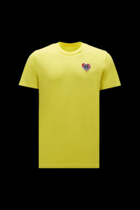 For brand lovers - this cotton jersey t-shirt for men is embellished with a heart motif. A wardrobe staple, this crew neck t-shirt is crafted from cotton jersey. An embroidered, heart-shaped patch gives a fresh perspective to the classic Moncler logo. - Crafted from cotton jersey - Crew neck - Short sleeves - Logo patch COMPOSITION AND CARE BASE FABRIC: 100% Cotton; Ribs: 100% Cotton Wash max 30°C - Mild process; Do not bleach; Do not tumble dry; Ironing maximum temperature 110°C - without steam; Dry cleaning in tetrachloroethene or with hydrocarbons - mild process; Professional wet cleaning - mild process; Flat dry in the shade; Wash separately; Wash inside out; Iron inside out Product code I20918C000418390T140 Made in Turkey