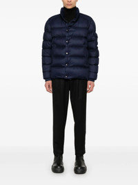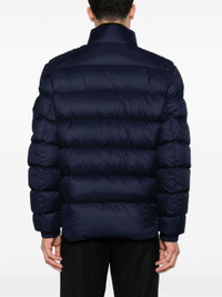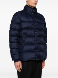 navy blue goose down padded design quilted flocked finish diagonal stripe pattern front press-stud and zip fastening high neck long sleeves sleeve patch pocket logo patch at the sleeve elasticated cuffs two side zip-fastening pockets quilted lining straight hem Size & Fit Model Measurements: Height: 1.85 m Bust/Chest: 93.0 cm Hips: 96.0 cm Waist: 73.0 cm Model wears size 3 Fabric and Care Designer Style ID: J20911A001555981B Designer Colour: 779 BLUE Composition: Outer: Polyamide 100%; Lining: Polyester 100%, Goose feather 10%, Goose down 90% Washing instructions: Hand Wash Made in Republic of Moldova