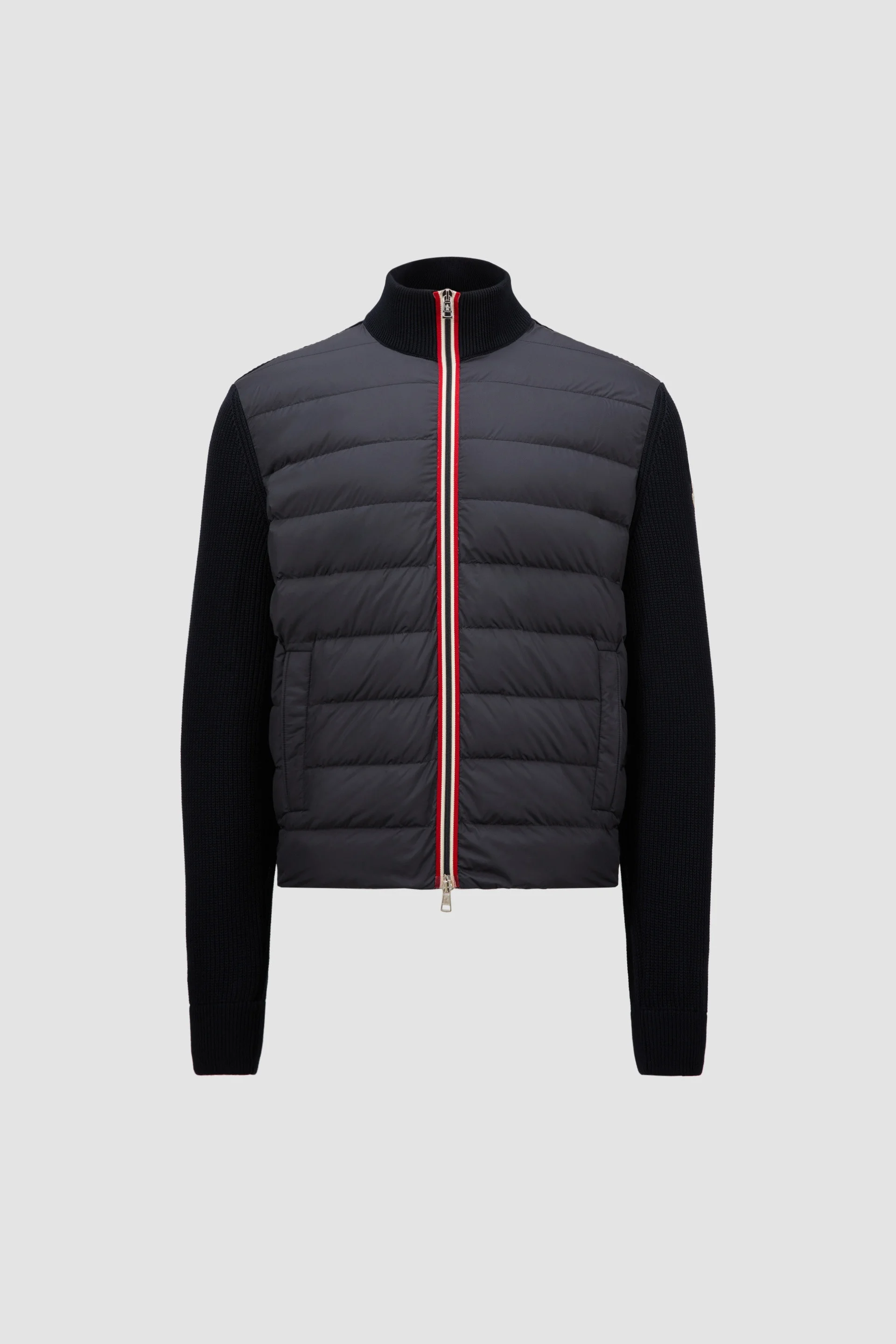Easily worn across seasons, this cotton cardigan for men is enhanced with a down-filled front in lightweight nylon. Part of a multifunctional wardrobe, this cotton cardigan features a down-filled front. Tapping into brand heritage, the piece is completed by a striped tricolor trim. The midweight knit is designed to be worn throughout the year, easily doubling as outerwear in milder weather. DETAILS - Crafted from cotton - Micro nylon lining - Down-filled and padded micro chic nylon front - Half-brioche stitch - Gauge 7 - Zipper closure with tricolor trim - Zipped pockets SIZE AND FIT - The model is wearing a size L and is 187 cm tall - The model measures: chest 85 cm, waist 75 cm, hips 85 cm - Regular fit - Fitted shoulders and chest - Boxy waistline COMPOSITION OUTER FRONT: 100% Polyester; BASE FABRIC: 100% Cotton; FRONT LINING: 100% Polyester; PADDING: 90% Down, 10% Feather Product code K10919B00006M1367779 Made in Tunisia