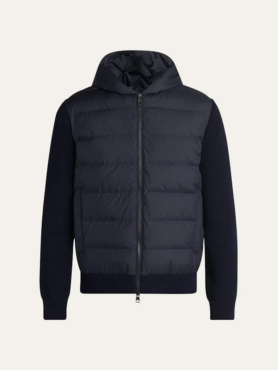 Men's Down Quilted Wool Knit Hooded Cardigan