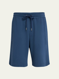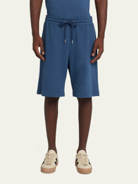 Moncler shorts in solid fleece with denim back pocket Elasticized drawstring waist Side slip pockets Classic logo patch at back Wide legs Pullon style Cotton/elastane Imported