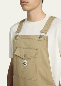 Moncler overalls made from durable cotton gabardine Square neckline Adjustable shoulder straps Front flap pocket with classic logo patch Side slip pockets Back patch pockets Carpenter loop at side Full length Relaxed fit Straight legs Cotton/elastane Made in Bulgaria Online Inquiries: BGS21_NCSPP| Store Inquiries: #4943689