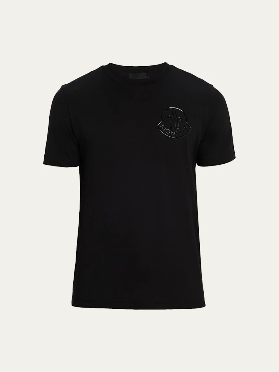 Moncler Tshirt in comfortable cotton elevated with the distinctive logo in a tonal colorway with a glossy finish Crew neckline Short sleeves Pullover style Cotton Machine wash cold Imported