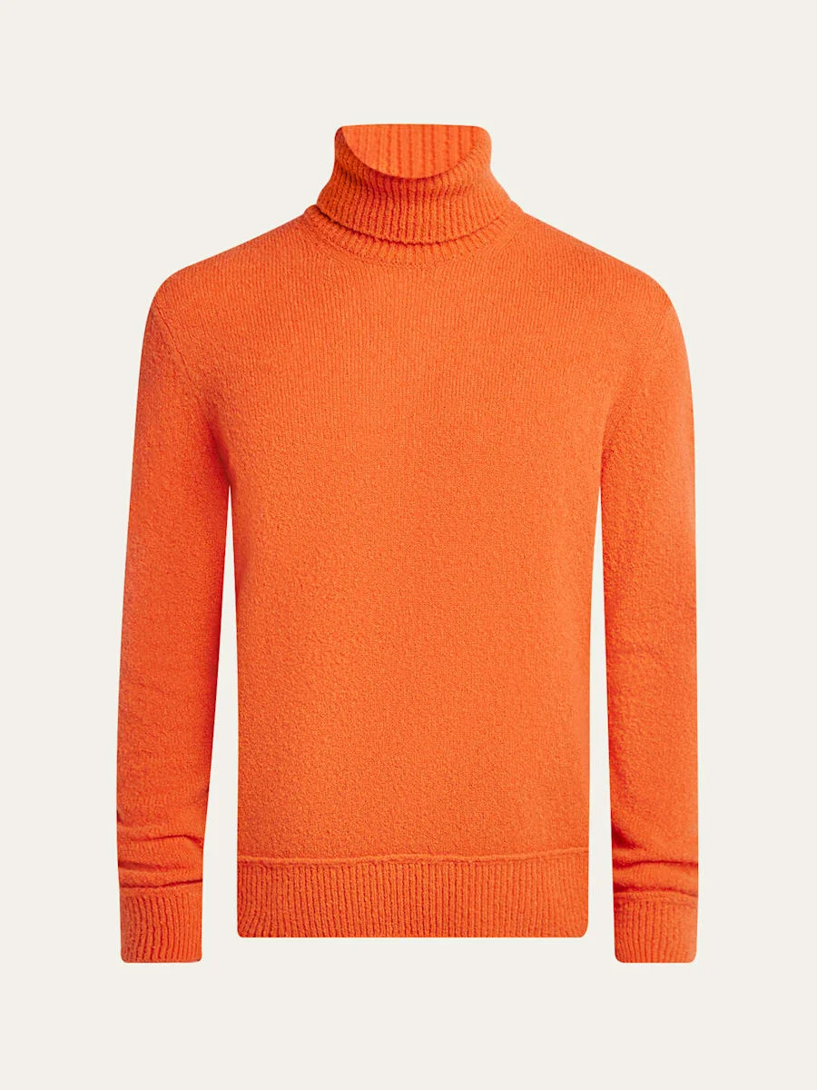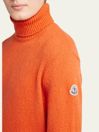 Moncler solid sweater in a soft wool blend with a classic ribbed turtleneck Logo emblem on the left sleeve Long sleeves Ribbed cuffs and hem Pullover style Nylon/virgin wool Professional cleaning recommended Made in Romania Online Inquiries: BGS21_NDMJ7| Store Inquiries: #5049038