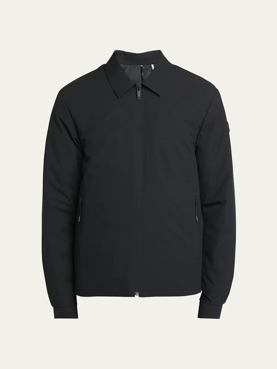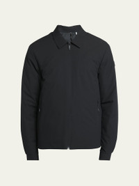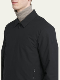 Moncler "Maset" shirt jacket Point collar; zip front Long sleeves; snap cuffs Side zip pockets Polyester Unlined Hand wash Made in Romania Model is 6'1"/185cm. Online Inquiries: BGS21_NC8ZU| Store Inquiries: #4833610
