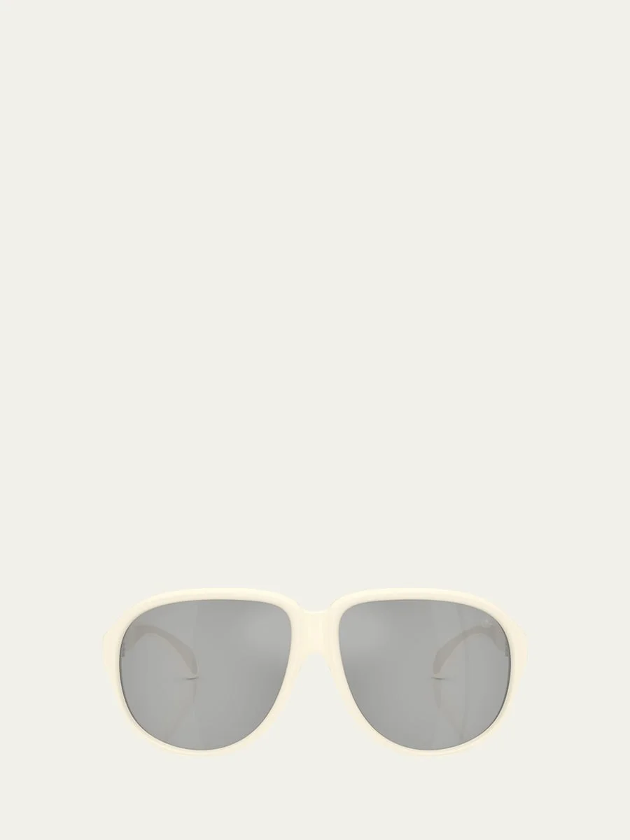 Moncler "ME8001" aviator sunglasses in plastic Lens/bridge/temple (in mm): 6014145 Solidcolor lenses Left lens logo emblem Saddle nose bridge Temple logo lettering Mlogo on temple tips Plastic 100% UVA/UVB protection Made in Italy
