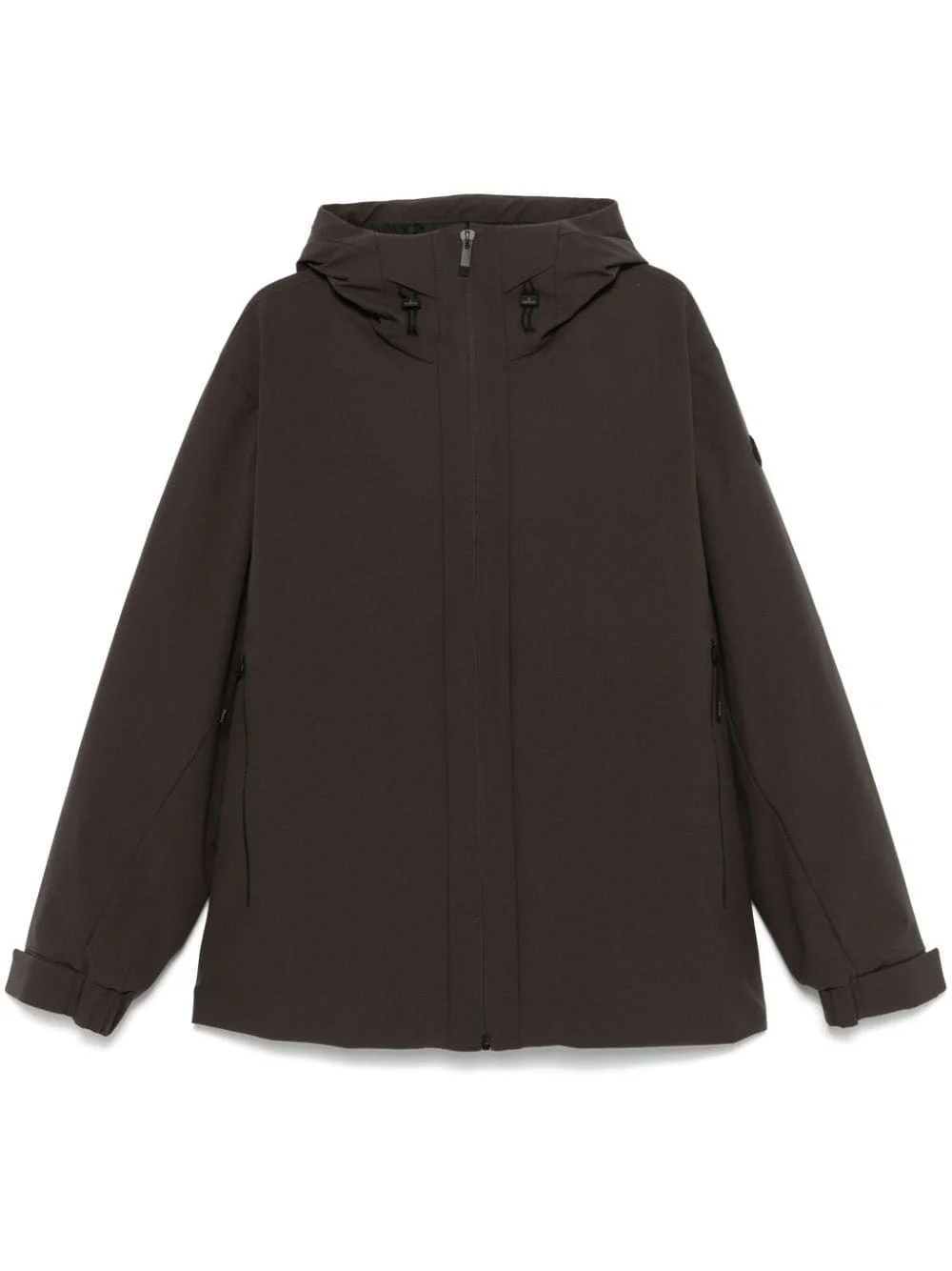 Riz hooded jacket Highlights - Coffee brown - Goose down - Front zip fastening - Drawstring hood - Long sleeves with touch-strap cuffs - Logo patch at the sleeve - Two side zip-fastening pockets - Quilted lining - Drawstring hem Imported Composition Lining: Polyester 100%, Goose Down 90%, Goose Feather 10% Outer: Elastomultiester 100%