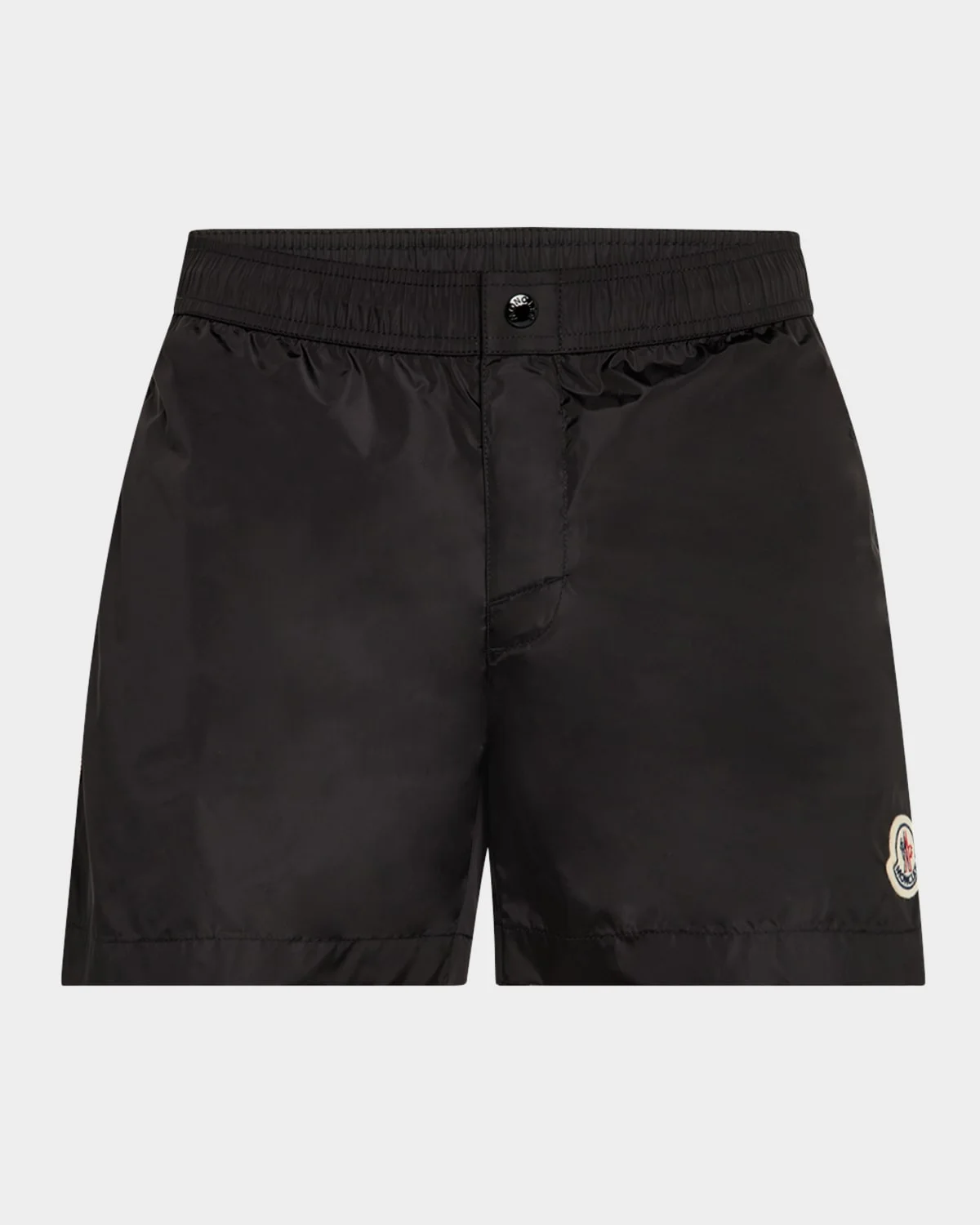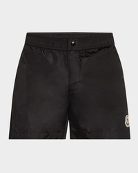 - Moncler solid swim shorts with signature striped outseams - Elasticized waist - Tonal snap closure - Back flap pocket with snap closure - Logo patch on front hem - Casual legs - Pull-on style - Nylon/polyamide - Lining: Nylon - Made in Albania