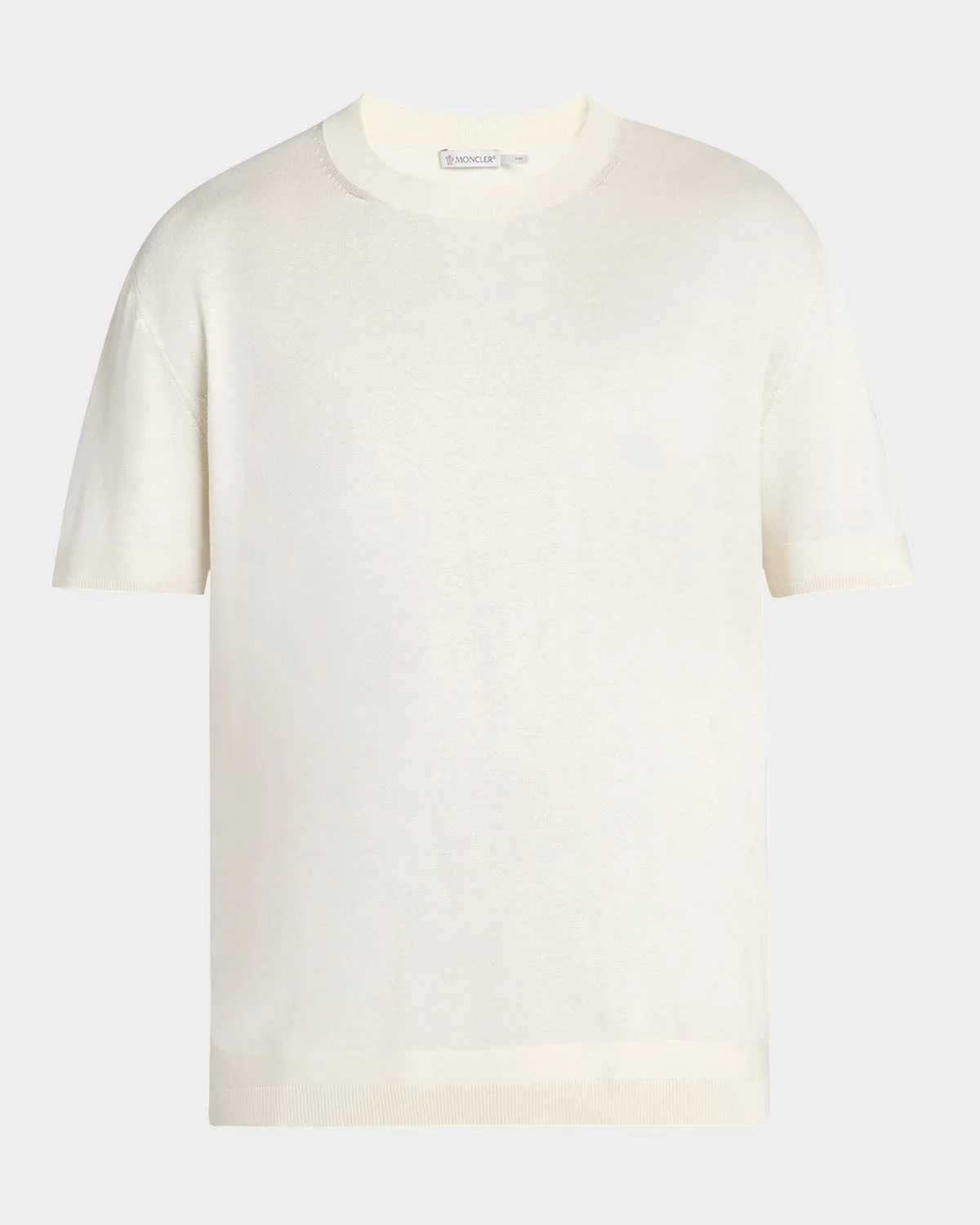 - Moncler T-shirt in luxurious cotton-silk knit - Crew neckline - Short sleeves - Tonal fabric logo patch - Ribbed cuffs and waistband - Pullover style - Made in Romania