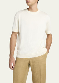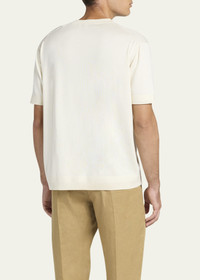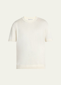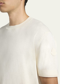 Moncler T-shirt in luxurious cotton-silk knit Crew neckline Short sleeves Tonal fabric logo patch Ribbed cuffs and waistband Pullover style Made in Romania Online Inquiries: BGS21_NCSQF| Store Inquiries: #4943715