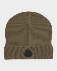 Knit from ultrafine wool, this Moncler beanie is finished with a tonal logo patch. Gauge 7 Folded cuff Virgin wool/polyester Professional cleaning recommended Made in Hungary