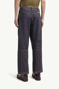Classic jeans are infused with vintage Americana influences in this pair from the Moncler x Mercedes-Benz by NIGO collection for men. Adding a twist to classic denim, these Moncler Genius jeans feature a stitched pattern. The Moncler x Mercedes-Benz by NIGO design is completed by an embroidered logo. DETAILS - Crafted from reactive denim - Zipper and button closure - Front pockets with snap button closure - Side pockets - Adjustable cuffs - Embroidered logo SIZE AND FIT - The model is wearing a size 46 and is 189 cm tall COMPOSITION EXTERIOR: 100% Cotton Product code K14012A00002M592377A Made in Italy