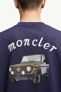 Tapping into each brand's heritage, this Moncler x Mercedes-Benz by NIGO t-shirt for men is embellished with a printed logo motif. Connecting the two brands, this Moncler Genius t-shirt pairs an archival logo with an illustration of an iconic Mercedes-Benz car. The Moncler x Mercedes-Benz by NIGO crew neck is crafted from cotton jersey, ideal for the everyday. DETAILS - Crafted from cotton jersey - Crew neck - Short sleeves - Printed car logo motif - Logo patch SIZE AND FIT - The model is wearing a size M and is 189 cm tall - Loose fit COMPOSITION BASE FABRIC: 100% Cotton; Collar rib: 100% Cotton Product code K14018C0000489AB9754 Made in Turkey