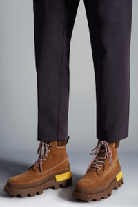 Designed for casual, leisure occasions, the Mon Corp ankle boots deliver a fashionable, Moncler touch for men. Crafted from suede and leather, the Mon Corp lace-up boots showcase iconic Moncler details. they are characterized by lace up closure and a loop on the back in the colors of the French flag. - Crafted from suede and leather - Leather insole - Lace-up - Rubber treaded sole - Polyurethane insert - Made in Italy - Sole height 8 cm COMPOSITION AND CARE SOLE: 100% Elastodiene;UPPER: COW; LINING: COW To protect your purchase over time, we recommend the shoes be cleaned using a brush with soft natural bristles or a slightly damp soft cloth. Before cleaning, make sure that the shoes are completely dry. After brushing, apply an appropriate amount of cleaning product to the leather and create small circular motions with a soft dry cloth. For suede shoes, please use a special rubber brush. We also recommend the use of a suitable water-repellent product before wearing the shoes in wet conditions. Dry away from direct heat. Finish the cleaning using a dry clean cloth. Store in the felt bag provided at the time of purchase. Product code H209A4F00060M2382237 Made in Italy