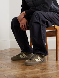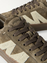A reissue of Moncler's 'Monaco' sneakers, this pair is made from suede with a brushed 'M' placed at an angle on the sides. Modelled on classic tennis styles, they have pinked tongues and contrasting heels to match the branding on their uppers. Size & Fit - Fits true to size. Take your normal size - European sizing Details & Care - Army-green and cream suede (Cow) - Lace-up - Style number: 4M002-40-M7633