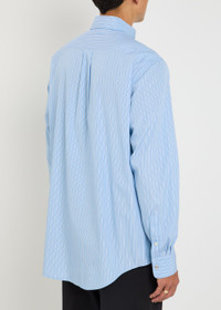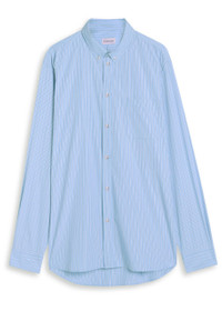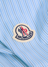 Info & Care Moncler cotton shirt Striped, button-down collar, designer applique at sleeve, button and press-stud fastening cuffs, chest patch pocket, box pleat at back, curved hem, longer back hem Press-stud fastenings through front 100% cotton Machine wash Size & Fit Length shoulder to hem: 30 inches/ 76cm; back: 32 inches/ 81cm Midweight Relaxed fit Model is 6'1"/ 186cm, chest size 38 inches and wears a size medium