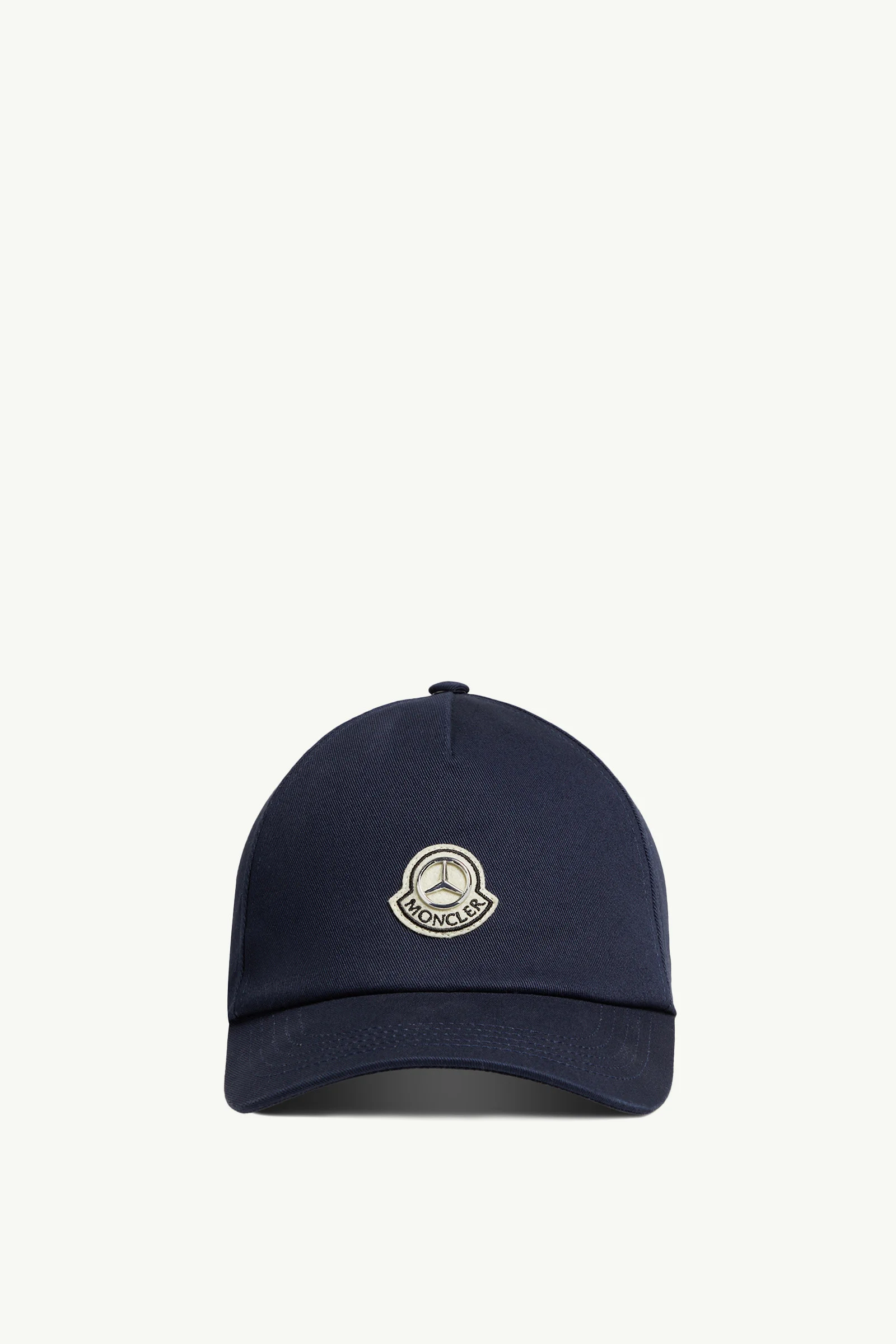 Adding a finishing touch to looks from the Moncler x Mercedes-Benz by NIGO collection, this baseball cap for men is characterized by logo accents. Part of the Moncler x Mercedes-Benz by NIGO collection, this baseball cap merges symbols from the brands to create a new logo patch. The Moncler Genius accessory is crafted from cotton gabardine. DETAILS - Crafted from cotton gabardine - Cotton canvas lining - Adjustable back tab with hook-and-loop closure - Logo patch COMPOSITION BASE FABRIC: 100% Cotton; LINING: 100% Cotton Product code K14013B000080486377B Made in China