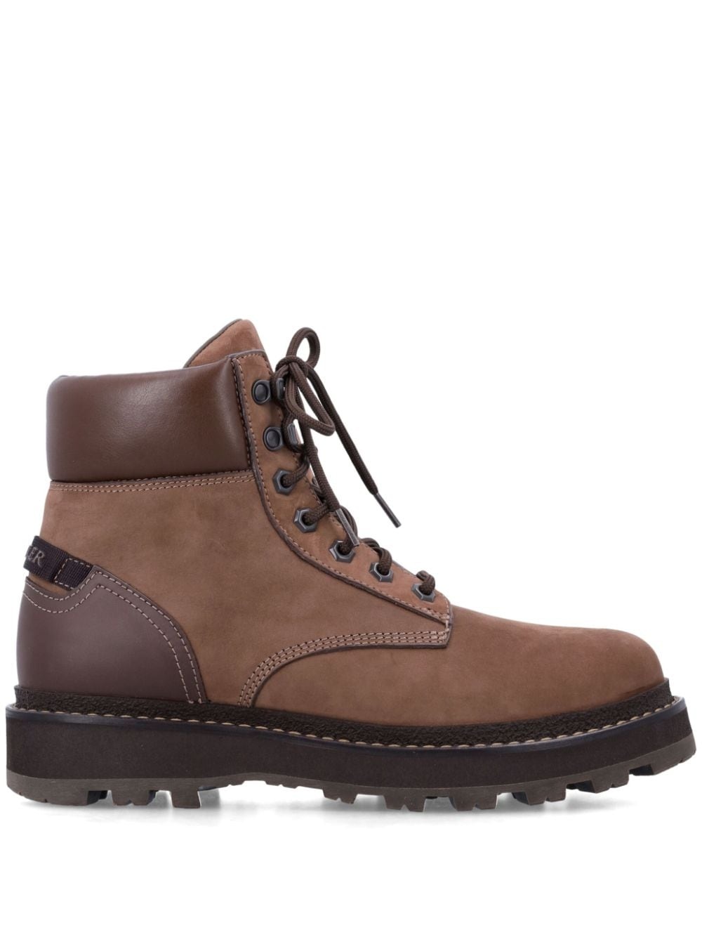 Peka Trek boots Highlights - Camel brown - Suede - Leather trim - Front lace-up fastening - Logo pull-tab at the heel - Logo-debossed tongue - Round toe - Padded ankle - Branded insole - Vibram® sole - Ankle-length Made in Italy Composition Sole: Rubber 100% Outer: Calf Leather 100%, Calf Suede 100% Lining: Calf Leather 100% SIZE & FIT Measurement HEEL 1.57 in(4 cm) HEIGHT 5.51 in(14 cm) Sole height 1.18 in(3 cm)