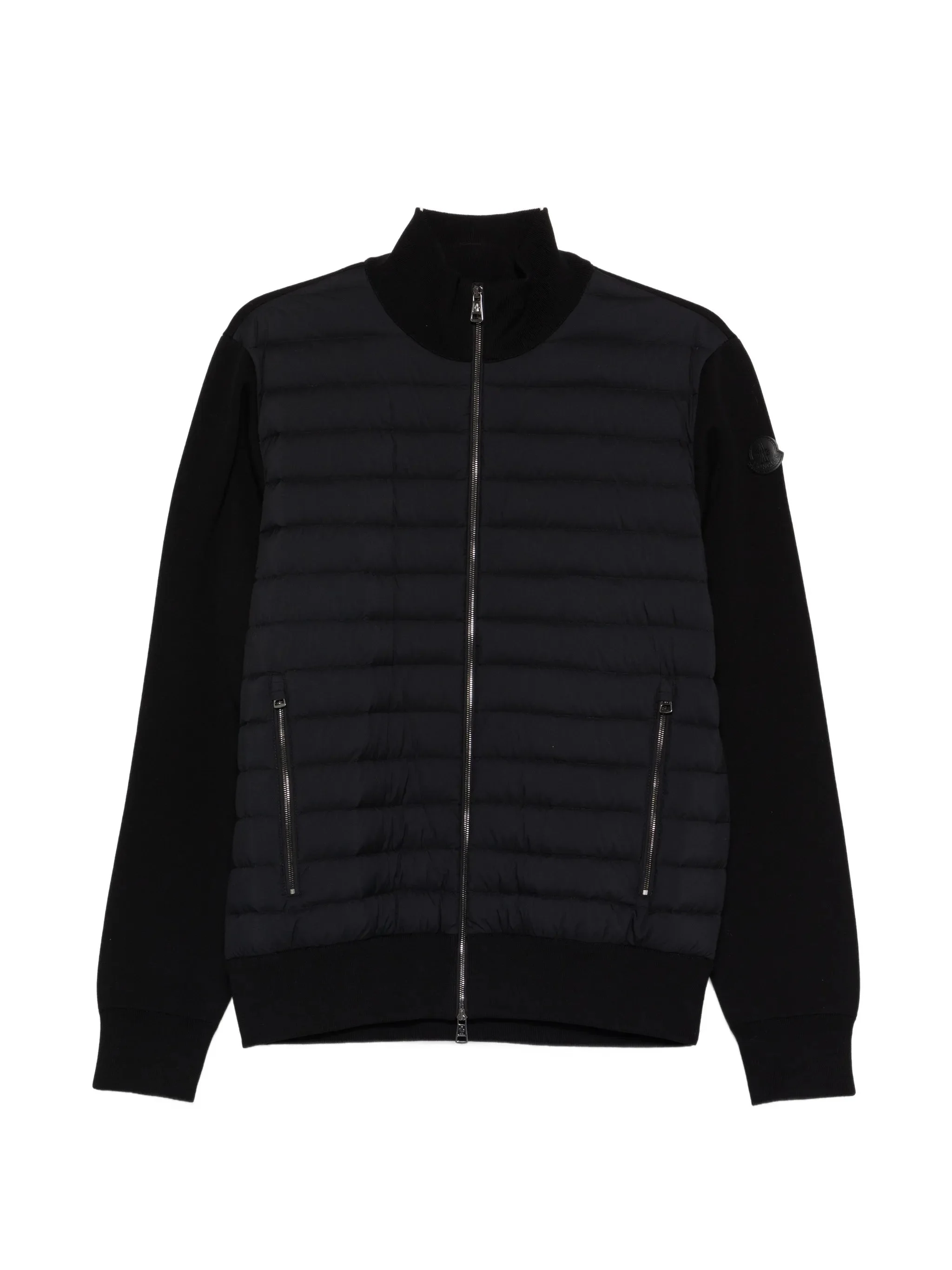 black quilted panel zip fastening high neck long sleeves logo patch - Color: BLACK - Made in: Romania - Designer Style ID: V9100 9B000-22 999 Composition and care Outer Composition Cotton: 87.0%, Outer Composition Nylon: 12.0%, Outer Composition Polyamide: 100.0%, Lining Composition Polyamide: 100.0%, Lining Composition Goose Down: 90.0%, Outer Composition Elastane: 1.0%, Lining Composition Goose Feather: 10.0%