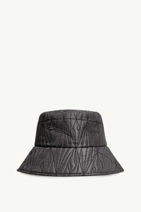 Designed to accompany looks from the Moncler + Rick Owens collection, this men and women's bucket hat is crafted from ultra-light materials. An architectural study rendered in fabric and form, this bucket hat features the Moncler + Rick Owens signature quilting. Adding a finishing touch to outfits from the co-creation, the padded accessory is completed by a dedicated logo patch. DETAILS - Crafted from ultra-light polyester - Cotton canvas lining - Padded - Embroidered logo patch COMPOSITION BASE FABRIC: 100% Polyester; LINING: 100% Cotton; PADDING: 100% Polyester; Embroidery: 75% Cotton, 25% Polyester Product code L109N3B00001M8263999 Made in Bulgaria