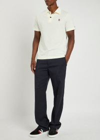 Info & Care Moncler seersucker trousers Adjustable waistband, side slip pockets, back slit pocket, designer applique; Pull on 76% cotton, 24% polyester Machine wash Size & Fit Inside leg length: 28 inches/ 71cm Midweight Loose slightly tapered fit; Model is 6'1"/ 185cm and wears a size;IT48