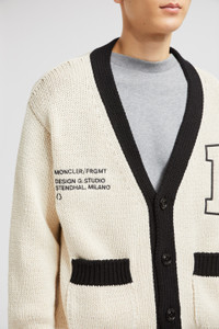 Part of the Moncler x FRGMT collection, this cardigan for men nods to varsity style with an embroidered monogram. Inspired by letterman jackets, this cotton cardigan embodies the Moncler x FRGMT collection's collegiate inspiration. The Moncler Genius style is embellished with a bold monogram patch and embroidered logo. DETAILS - Crafted from cotton cordonnet - Stockinette stitch - Gauge 3 - Button closure - Patch pockets - Embroidered monogram and logo motifs SIZE AND FIT - The model is wearing a size L and is 186 cm tall - Loose fit COMPOSITION BASE FABRIC: 100% Cotton Product code K109U9B00001M5206034 Made in Romania