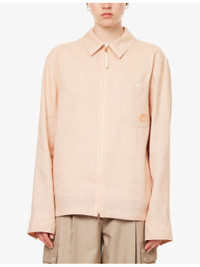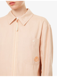 PRODUCT DETAILS - Moncler linen-blend shirt - 58% linen, 42% lyocell - Exposed zip fastening at front - Pointed collar, long sleeves, buttoned cuffs, one patch pocket at front with button closure, logo-patch at front, straight hem - Dry clean - Made in Romania - Size UK 40: length 30.7in / 78cm, chest 45.2in / 115cm - Model is 6ft 2in/1.88m and wears a size UK 40 - Lightweight, slight stretch Ref: R04486593