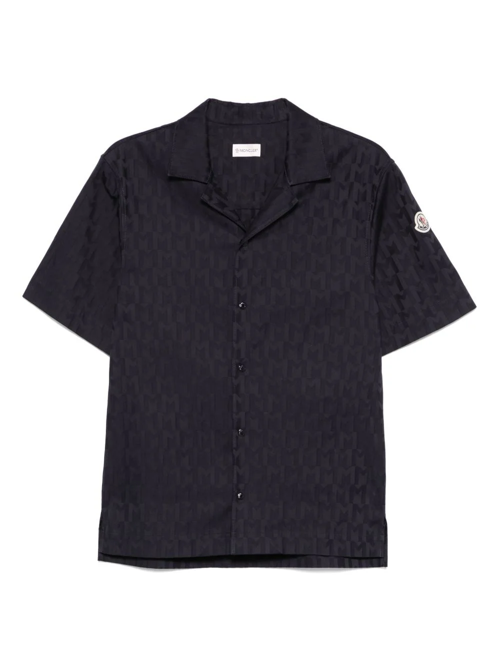 monogram-jacquard shirt Highlights - Navy blue - Front button fastening - Short sleeves - Short side slits - Logo patch at the sleeve Imported Composition Cotton 99%, Elastane 1% SIZE & FIT Model measurements Height 6 ft 2 in(1.87 m) Bust/Chest 37.79 in(96 cm) Hips 37.79 in(96 cm) Waist 30.31 in(77 cm) FittingInformation Designed for a regular fit, allowing for a comfortably loose fit throughout the body Made from a midweight stretch fabric, this piece offers elasticity and flexibility when worn Measurement CHEST 38.58 in(98 cm) LENGTH 25.59 in(65 cm) Shoulder Width 18.11 in(46 cm) SLEEVE LENGTH 10.23 in(26 cm) WAIST 39.37 in(100 cm)