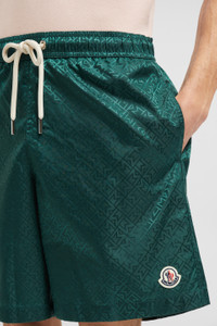 Ready for your next getaway, this pair of swim shorts is characterized by a graphic monogram pattern. A playful take on brand DNA, this pair of swim shorts reimagines the monogram as a geometric jacquard pattern. Fit for relaxing by the pool or on the beach, the bottoms are presented in recycled nylon with a satin-like finish. DETAILS - Crafted from recycled satin nylon jacquard - Mesh lining - Waistband with drawstring fastening SIZE AND FIT - The model is wearing a size L and is 187 cm tall - The model measures: chest 85 cm, waist 75 cm, hips 85 cm COMPOSITION BASE FABRIC: 100% Polyamide / Nylon; LINING: 100% Polyamide / Nylon Product code K10912C000025987HF88 Made in Moldova